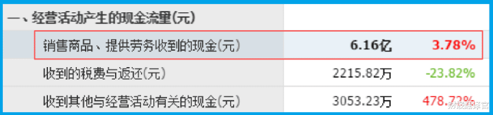 销售商品收到的现金总额是6.16亿,同比还增长了3.78%。